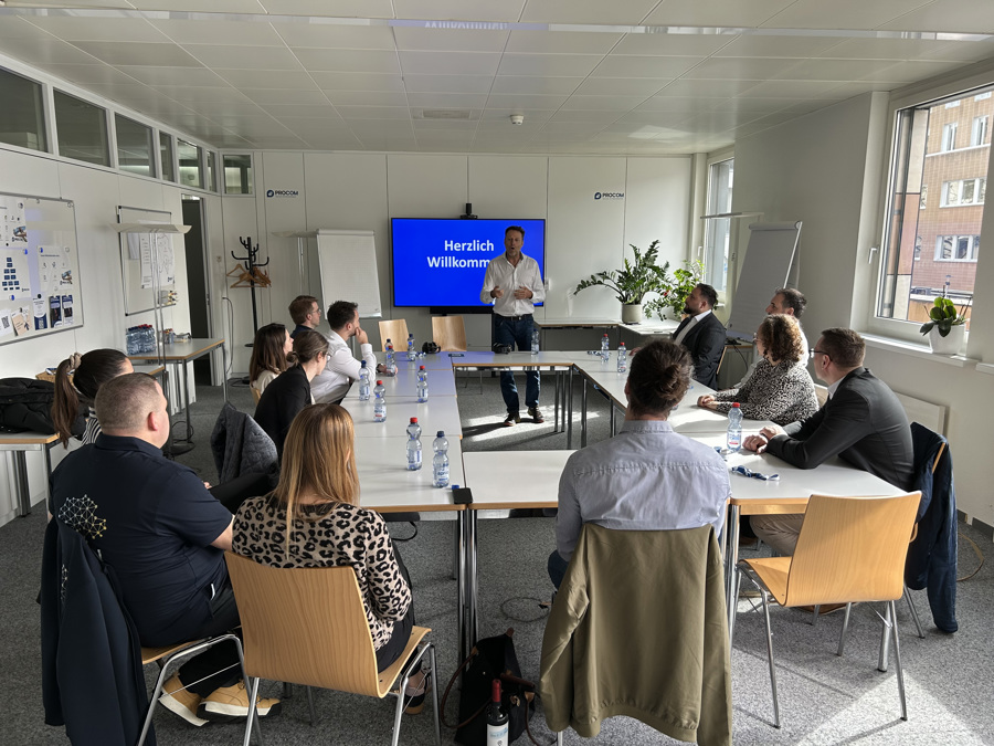 Empfangen wurden die Mitglieder der JCI Olten vom Geschäftsführer Roman Probst, der unsere Gruppe herzlich willkommen hiess. Im Anschluss führte er die Teilnehmenden durch die Räumlichkeiten der Procom und stellte dabei die verschiedenen Tätigkeitsbereiche und Dienstleistungen von Procom vor.