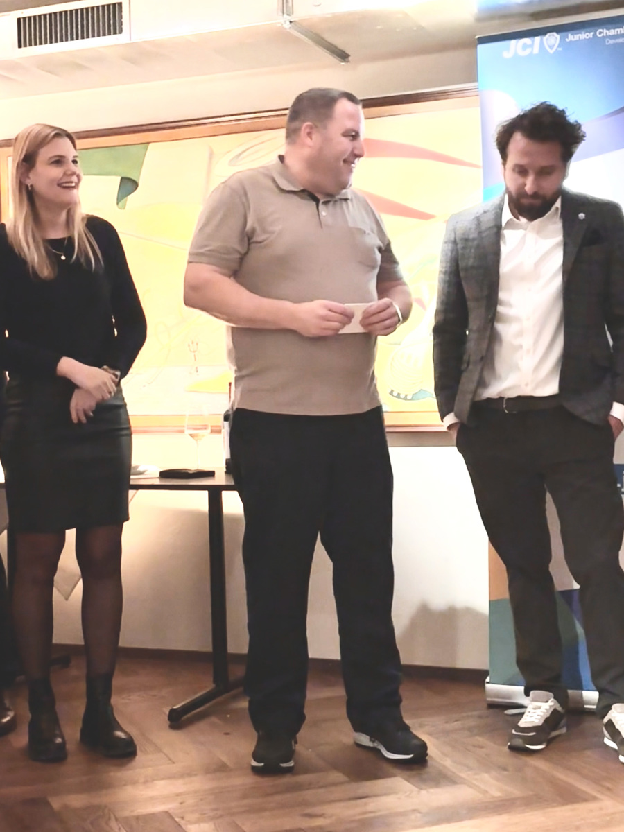 Andi ehrte Darko für sein Wirken- sowohl für die LOM Olten, als auch national für die JCI Schweiz. So hat Darko bereits ein Jahr nach seiner Aufnahme das Amt des Vize-Präsidenten angetreten und unsere LOM im Jahr 2020 während der Pandemie durch eine schwierige Phase geführt. Als Mitorganisator der ersten Nacht der jungen Leaders hat Darko den nationalen Award gepusht und sich anschliessend im Jahr 2022 als 6. Mitglied unserer LOM im NK als EVP Events engagiert und dabei z.B. das nationale Golfturnier mitorganisiert. Im selben Jahr hat er in Olten das Wirtschaftszmorgen geplant und diesen Event damit sehr geprägt. Darko hat es geschafft, die JCI mit dem Gewerbe und der Stadt Olten zum Thema Stadtentwicklung zu vernetzen und er hat dadurch einen grossen Anteian der Tatsache, dass Olten seit 2024 einen Citymanager engagiert hat.